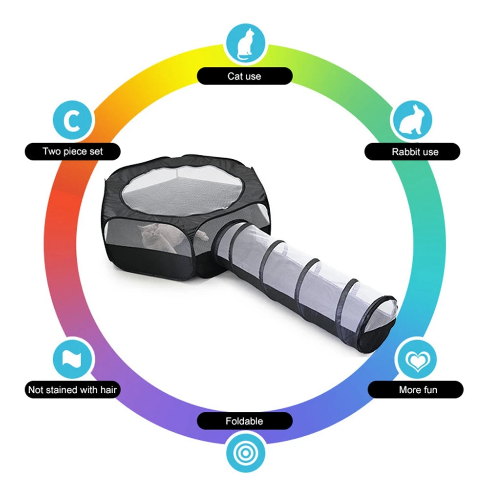 2 In 1 Cat Tunnel Rabbit Cage Foldable Multifunctional Pet Toy Supplies