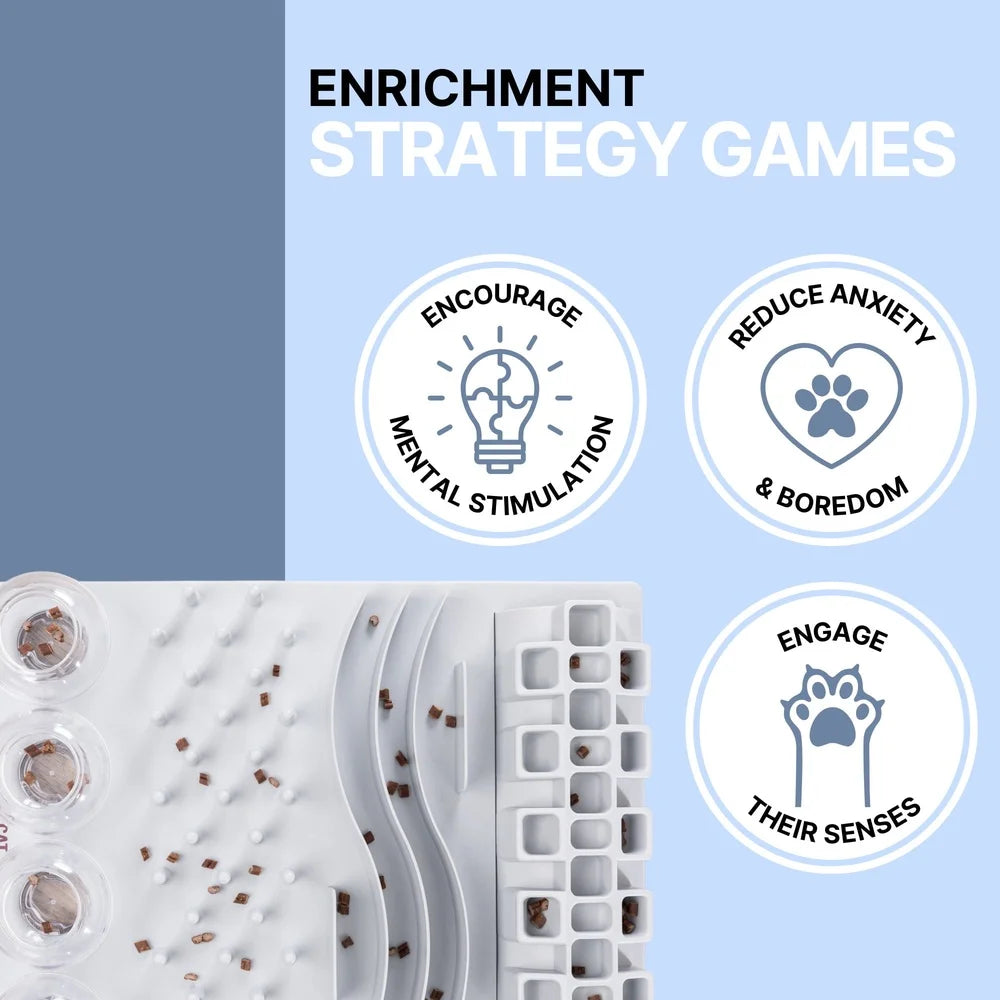 - This 2-in-1 puzzle and treat dispenser keeps your cat mentally sharp, slows her eating, and rewards problem-solving with tasty surprises.