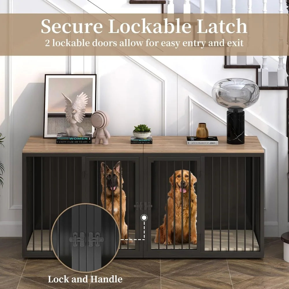 Enjoy a dependable, space-saving home for your dog with the Hign-concerned Dog Crate Iron Frame With Double Doors.